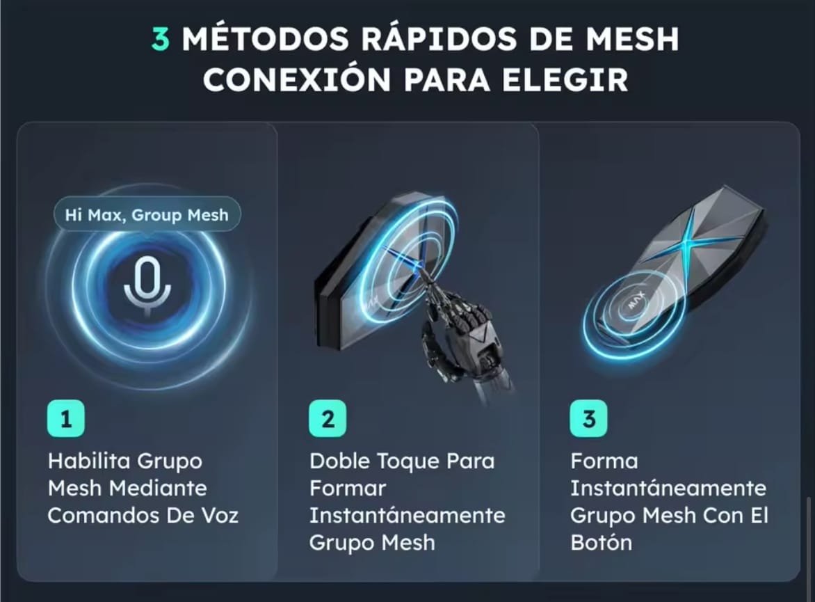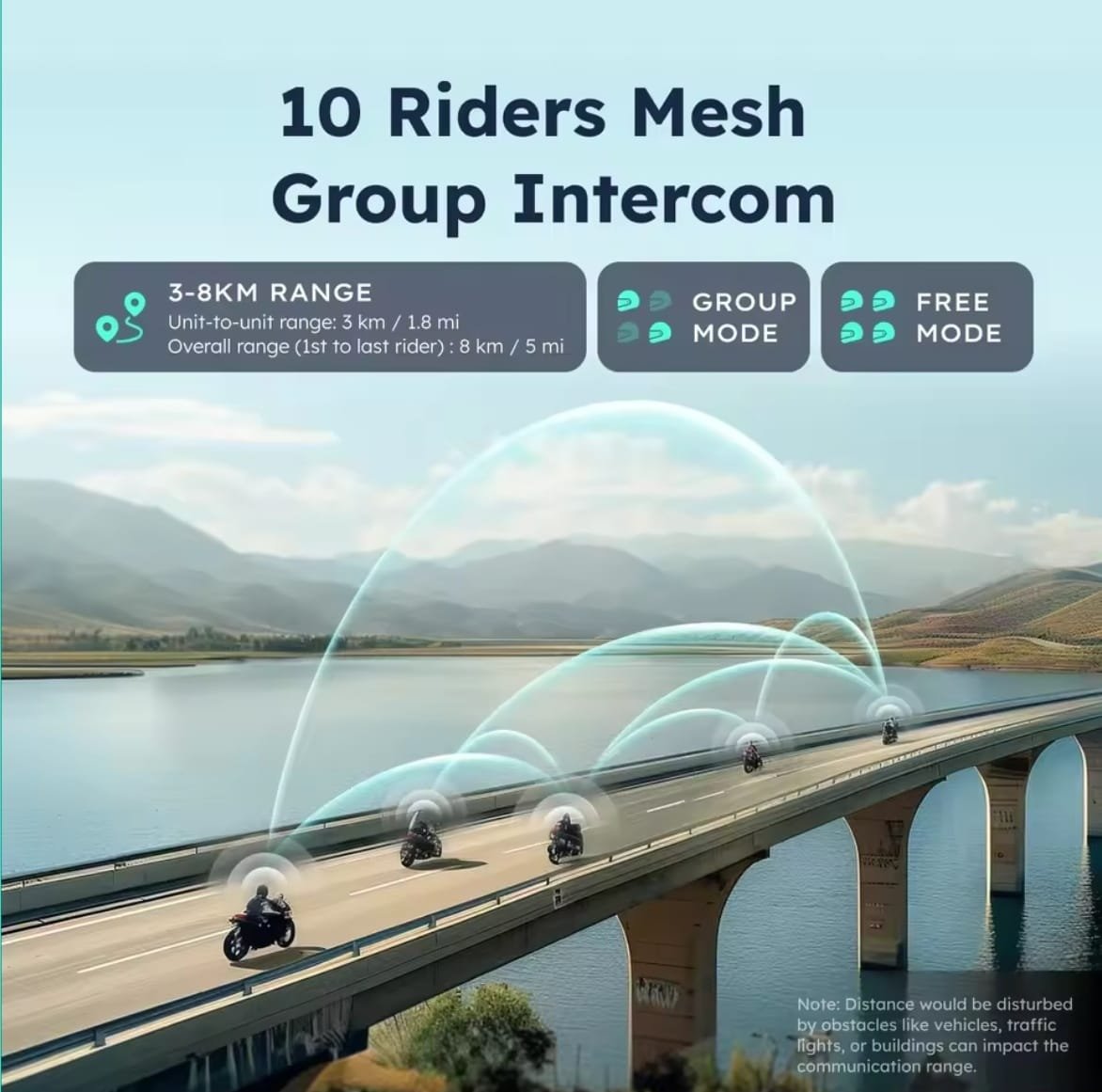 Comandos de voz y controles de botones: simplemente puede decir “Hi Max” para habilitar comandos activados por voz para navegación, malla de grupo y más; La función de ajuste de volumen automático predeterminado se adapta a su velocidad, mantener la claridad del sonido