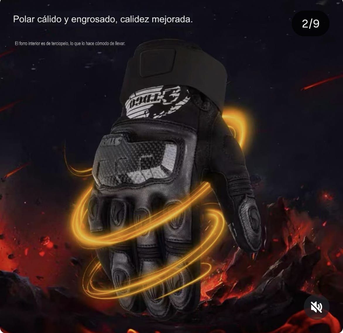 Guantes de cuero natural para moto TDGO resistentes al agua y Aptos para pantalla táctil . Proteger fibra carbono Talles L y XL